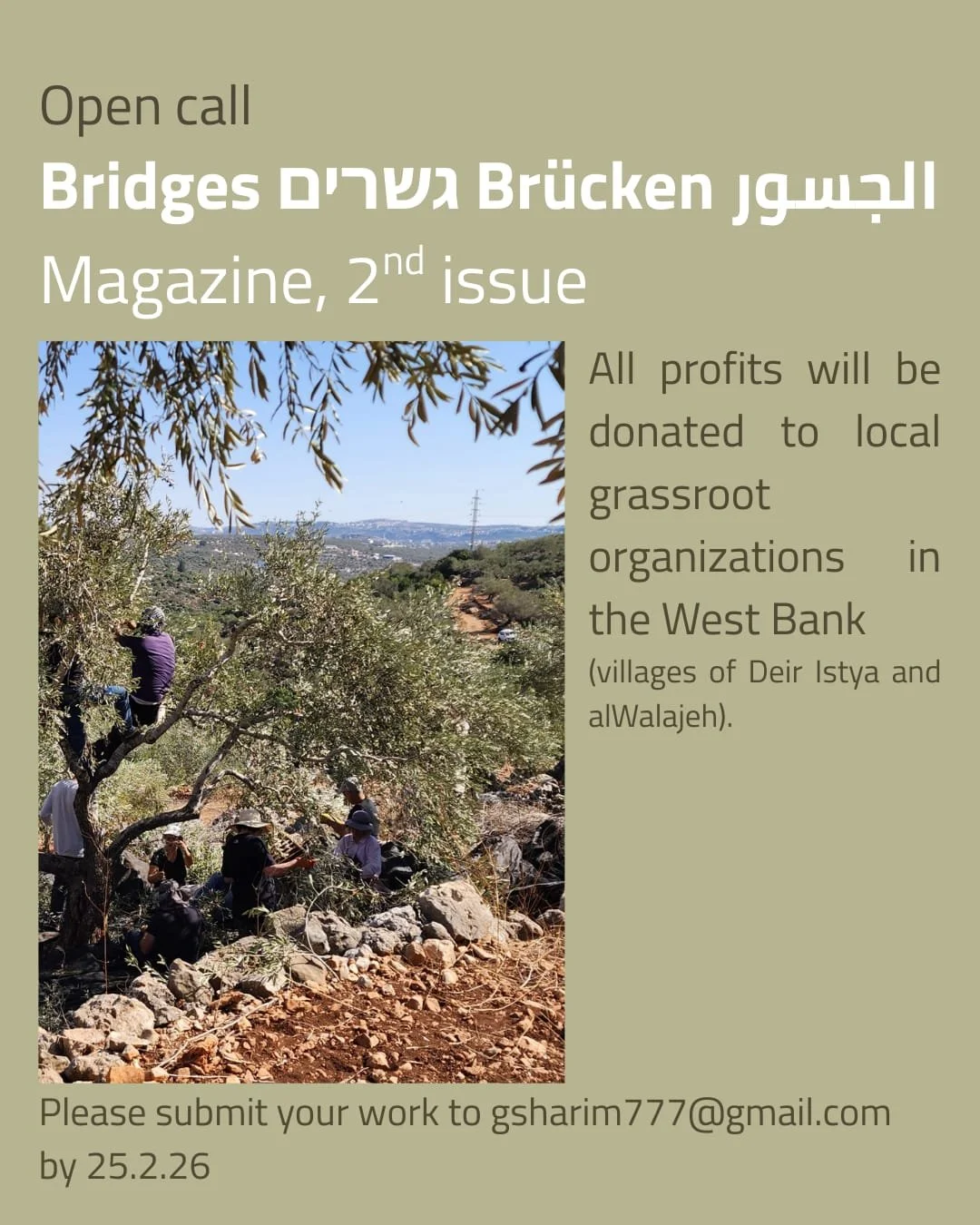 This magazine brings us back to where we first met: documenting home demolitions in the Jordan Valley and the West Bank. That project was a collaboration between Rabbis for Human Rights, where Mati was active, and Dharma Activism, where Yossi volunteered. Since then, we've both left Israel and moved to Berlin. Today, though far from the occupation in the West Bank and the horror unfolding in Gaza, we've created a unique international and multilingual cultural project that combines both activism and art.